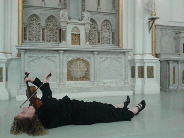 Katherine’s work is inspired by physical theatre, using strong visual images as part of the performance. When performing the violin becomes an extension of her physical self, another part of her body as well as an extension of her voice. Inspired by physical theatre, Atkinson uses strong visual images as part of her performance, often responding to specific architectures and environments in an exploration of the boundaries between public and private space.